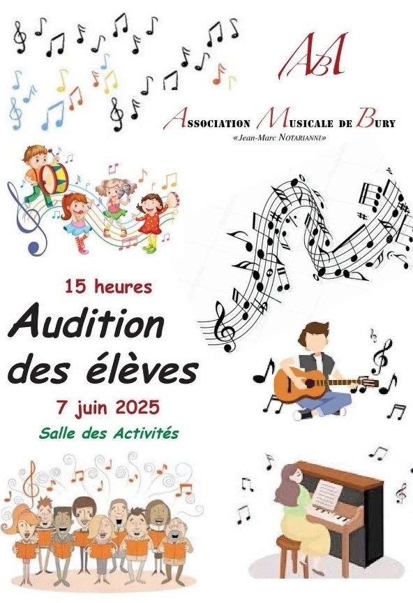 L’Association Musicale de Bury (AMB) vous informe de la reprise des cours le 1er Septembre 2025. Ateliers musicaux 2/4 ans, éveil musical, formation musicale, piano, guitare, atelier vocal. Formulaire d’inscription disponible en mairie, dossier complet à remettre sous enveloppe scellée avec mention AMB en mairie.